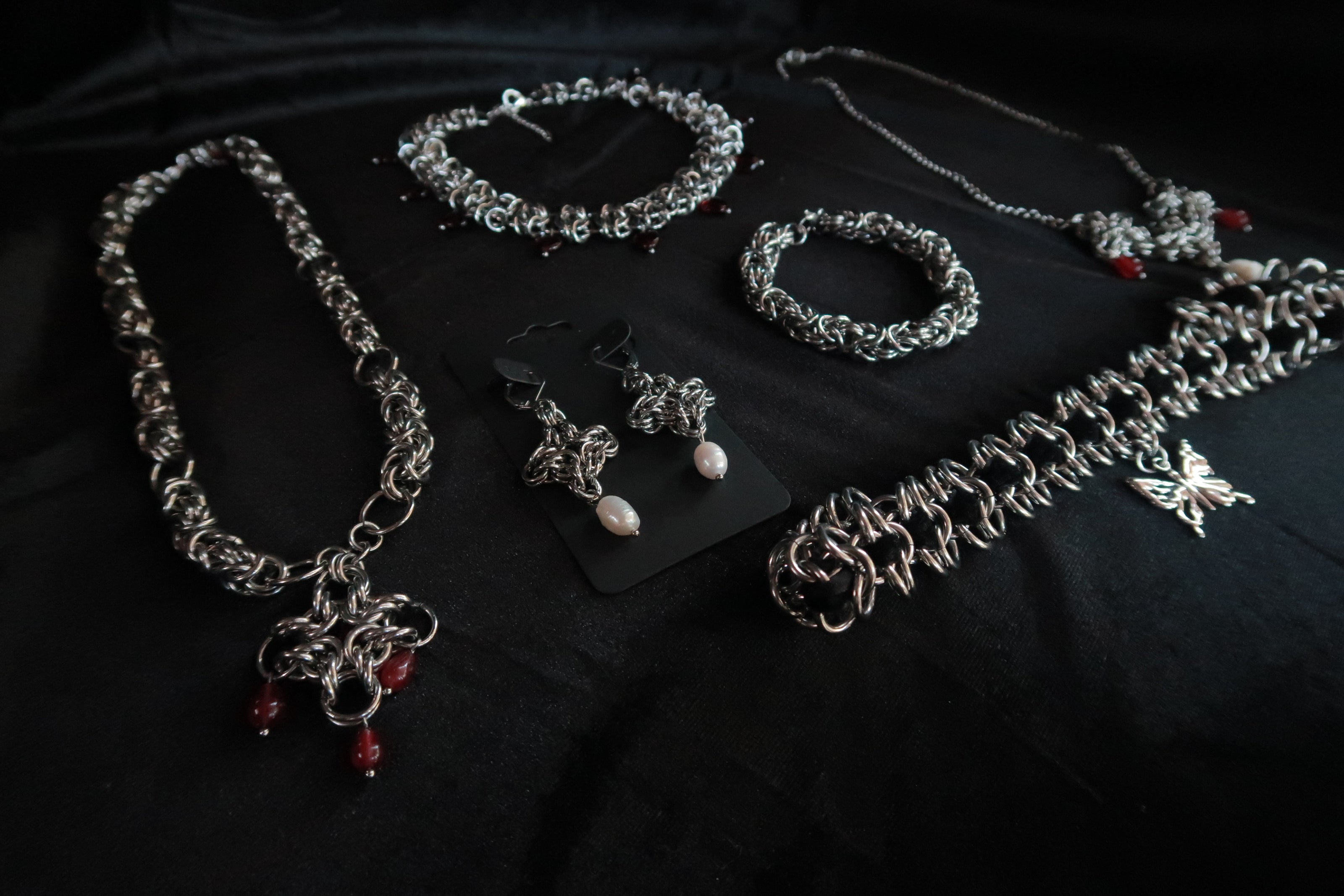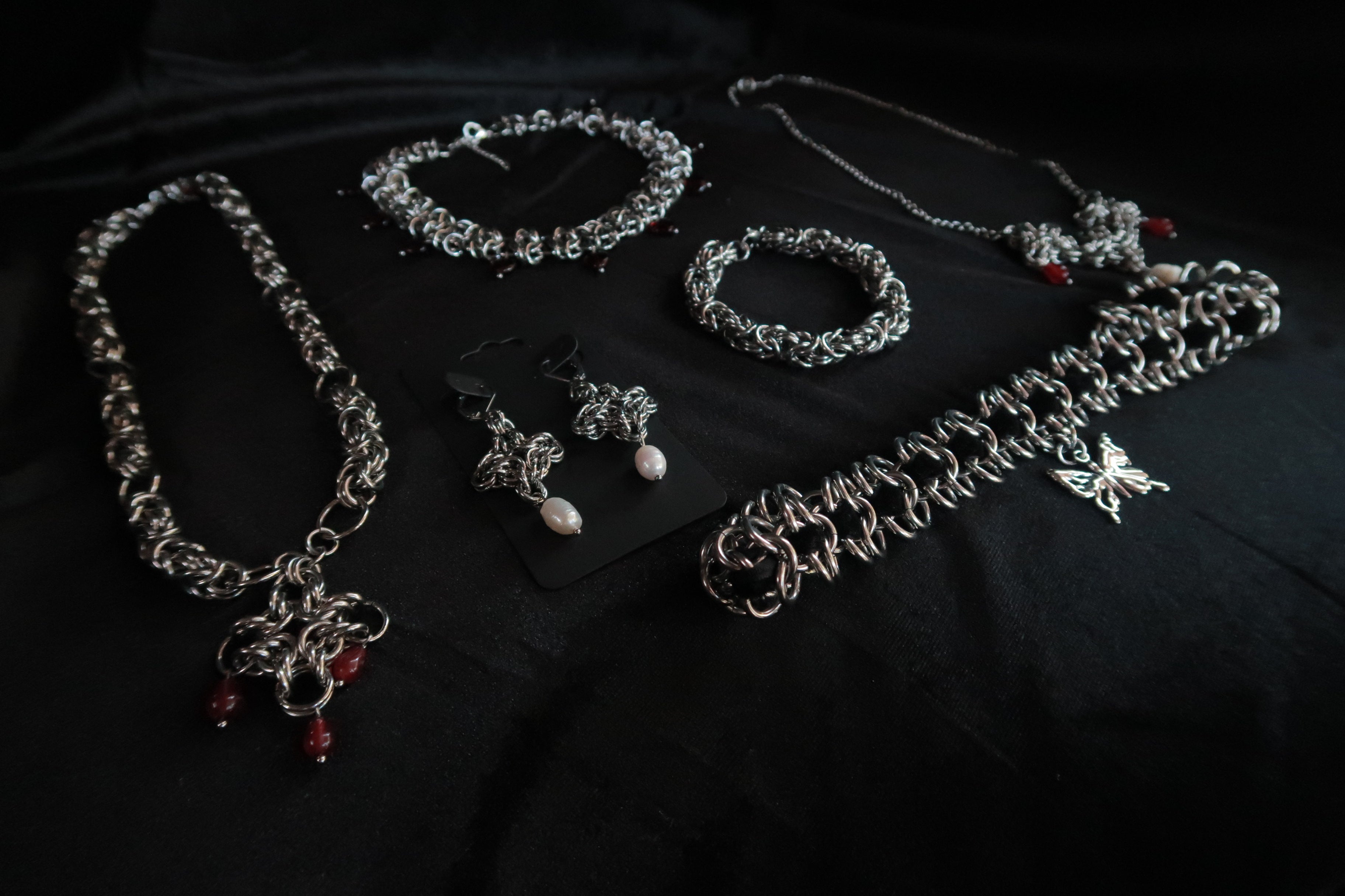 Hauntingly beautiful pieces inspired by gothic art and literature and the mystic. Meticulously handcrafted to combine the structural elements of chainmaille with the delicate and ethereal.