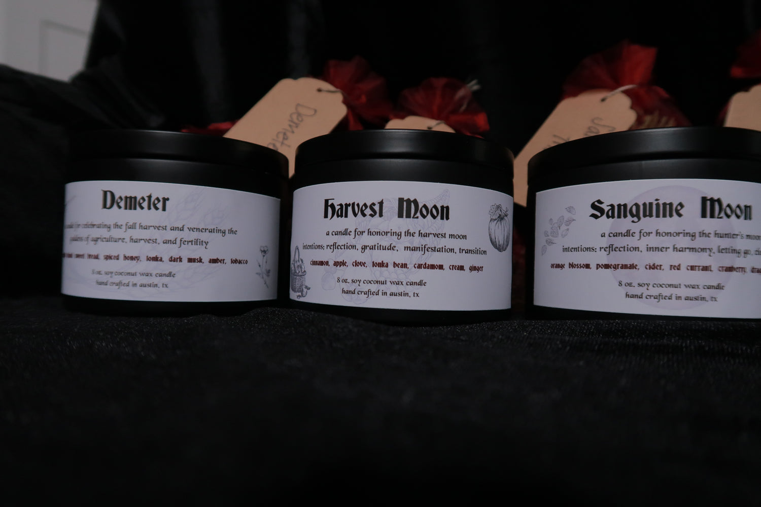 My vision for Veiled Nocturne is to create jewelry and candles that represent my love of all things dark, magical and opulent. To design pieces that are full of intention and crafted with care. I hope you enjoy my products as much as I do making them!